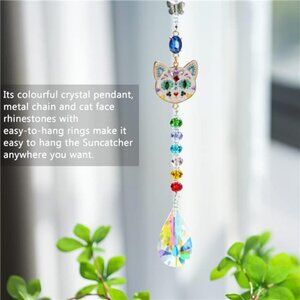 🧿HIGH QUALITY CRYSTAL SUN CATCHER: No longer a single crystal pendant, we have innovated material design and launched a metal cat with butterfly prism suncatcher inlaid with colored rhinestones, makes your interior decoration chandelier unique. Material: Metal and Crystal. Size: 18 in