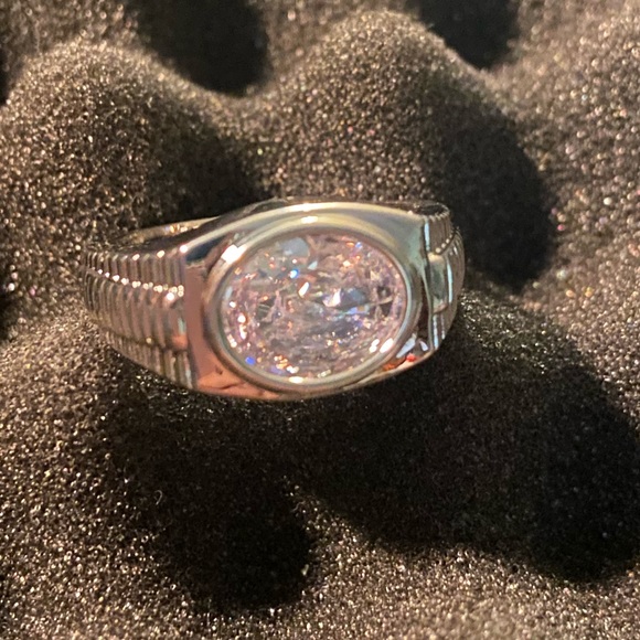 No shortage of sparkle with this piece. Brand new never worn. Silver plated brass CZ ring.