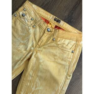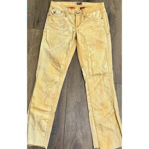 Crystal Rock Christian Audigier Skinny Leg Yellow Raw Hem Streetwear Jeans Sz 30