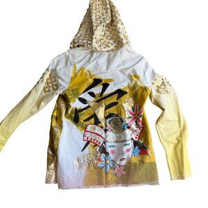 Crystal Rock by Christian Audigier Geisha Graphic Hooded Jacket Women Medium Yellow White