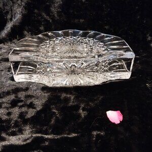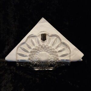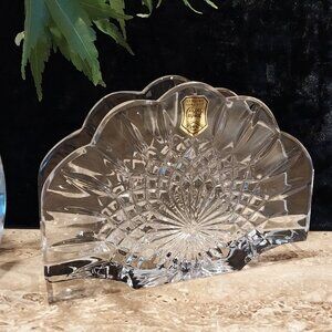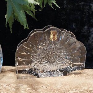 Vintage hand-cut lead crystal napkin holder, a style frequently associated with Polish crystal manufacturers like Violetta or Polonia Glassworks.
