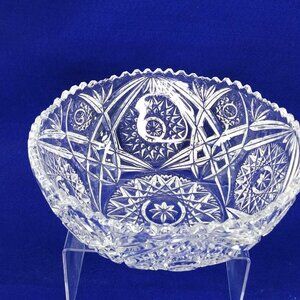 This vintage Unbranded Crystal Serving Mixing Bowl with sawtooth edge features a stunning geometric pattern of hobstars and diamonds. Its clear crystal color and traditional style make it a sophisticated addition to any table setting.