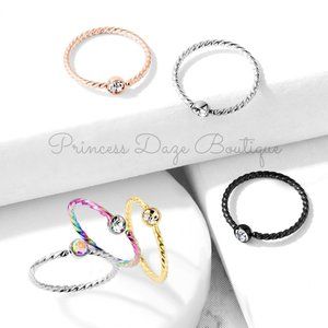 Crystal Set Twisted Rope Bendable Hoop Nose Ring/ Ear Piercing
