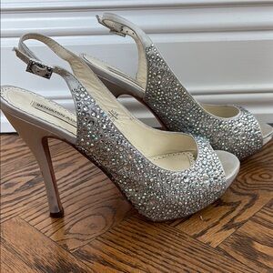 Elegant and sparkling, these silver slingback heels are perfect for any special occasion. The shimmering design adds a touch of glamour to your outfit.