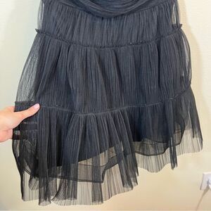 Crystal Sky women’s black tulle strapless mini dress. Zips in back. Has removable padding.