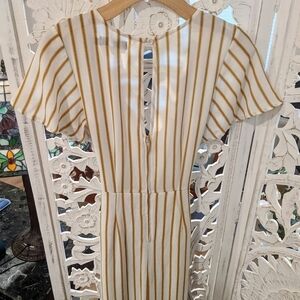 Crystal Sky Cream & Mustard Striped Midi Dress