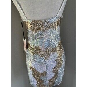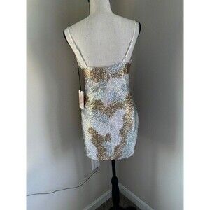 Crystal Sky Sequin Sleeveless Short Dress Gold and White Lined Sz XS