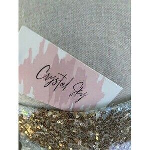 The Crystal Sky Sequin Sleeveless Short Dress in Gold and White features a strappy sleeve design, perfect for formal occasions like weddings, parties, or cocktail events. This XS-sized dress is made of polyester with sequin accents, and it comes lined for added elegance and comfort. With a pullover closure, this mini dress from the Crystal Sky brand offers a sleek and stylish look for any season, whether it's winter, summer, fall, or spring. Ideal for those who appreciate a metallic theme in their attire.