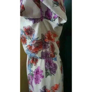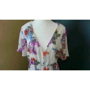 Crystal Sky White Floral Maxi V-Neck Flutter Short Sleeves Boho Dress Size 9
