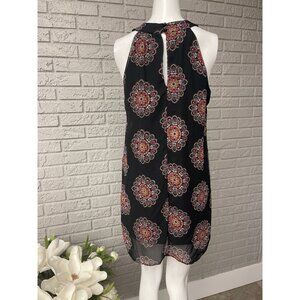 Crystal Sky Women Black & Red Medallion Print Halter Mini Dress Size S