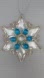 Add a burst of icy brilliance to your décor with this Crystal Snowflake Ornament, handcrafted using beveled glass, aqua glass beads, and a vintage wreath brooch centerpiece. The result is a striking 7” suncatcher that sparkles beautifully in natural or holiday lighting.
