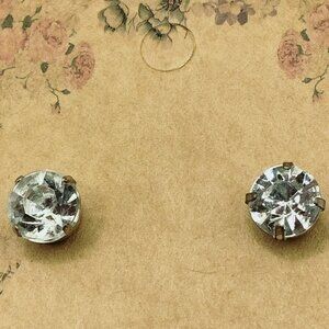 Crystal Stud Earrings Faux Silver Setting Simulated Diamond