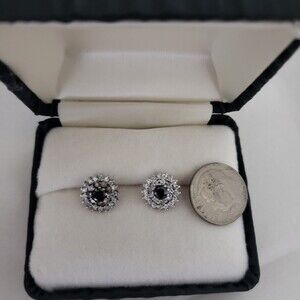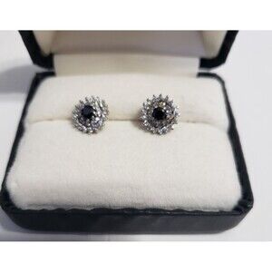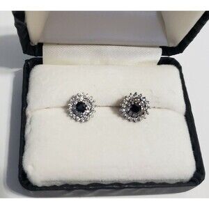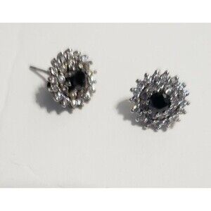 Crystal Stud Earrings Rhinestone and Black Glass Cluster Surgical Steel Posts