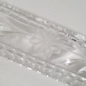 Crystal Sugar Cube Server Dish Flower Daisy Floral Clear