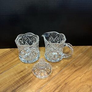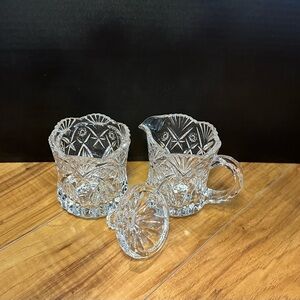 (#50)-Excellent condition elegant crystal sugar and creamer set, perfect for enhancing your dining experience. The clear design adds a touch of sophistication to any table setting.