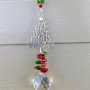 Crystal Suncatcher Christmas Tree Ornament - Love Joy Peace Family Christmas