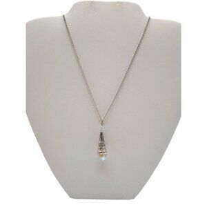 Crystal Teardrop Pendant Chain Necklace Spring Ring Closure Silver Tone Vintage
