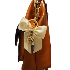 Add a touch of elegance and intention to your bag or keys with this handcrafted amethyst keychain charm. This design features a Tree of Life pendant adorned with natural amethyst chip stones, a faux pearl accent, and a soft purple suede tassel—all tied together with a luxurious ivory satin bow and rose gold hardware.