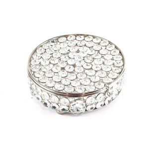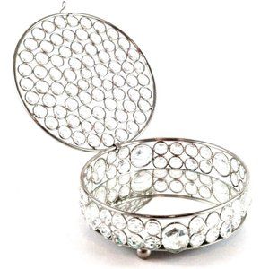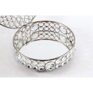 Crystal Trinket Round Organizer Mirrored Jewelry Chrome Accents Keepsake Chest