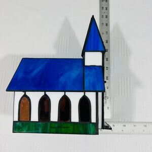 Crystal Village Stained Glass Church Illuminated VTG Handcrafted American Glas\