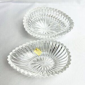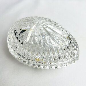 Stunning 24% lead crystal craftsmanship intricately designed egg with removable lid, featuring elongated oval cuts that create a dazzling, light-reflecting effect. The literal translation of the words on the box are “Crystal Lead of Perfection”. Purchased in Germany over 30 years ago. The original boxes are all written in German with text such as Verträglichkeit Spülmaschinen-Beständigkeit" (Dishwasher Compatibility) and "Qualitäts-Garantie" (Quality Guarantee).