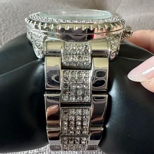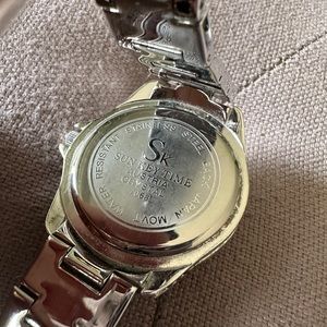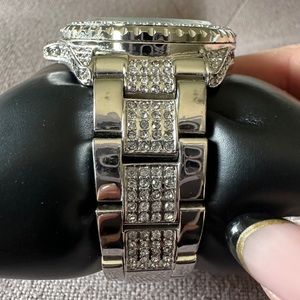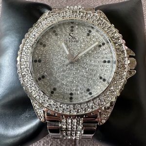 SK Time Crystal watch with black and clear crystals on the face and strap.