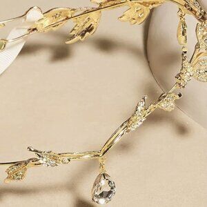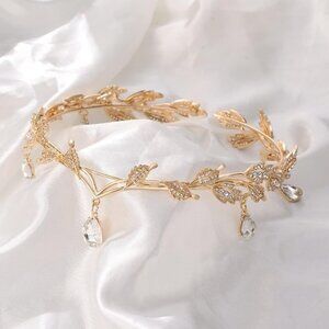 Crystal Wedding Diadem, Bridal Floral Headband, Gold Bridesmaid Headpiece