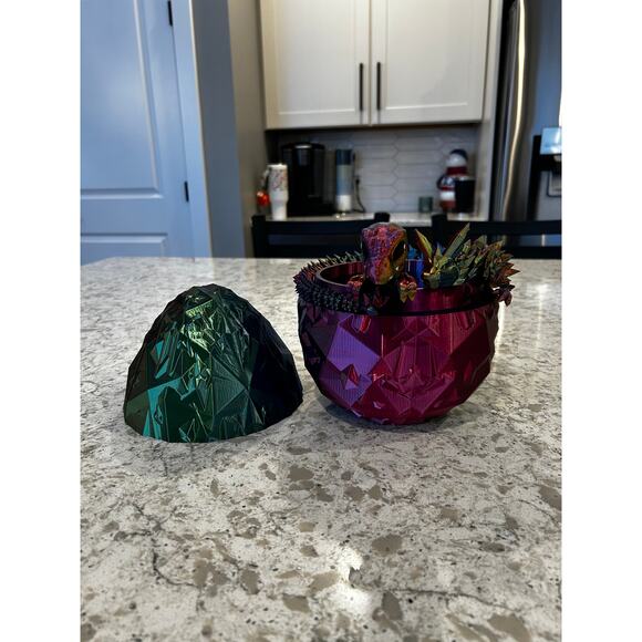 9” Tall 3D Printed Egg – Make a bold statement with this eye-catching closeable egg, perfect for display on shelves or desks.