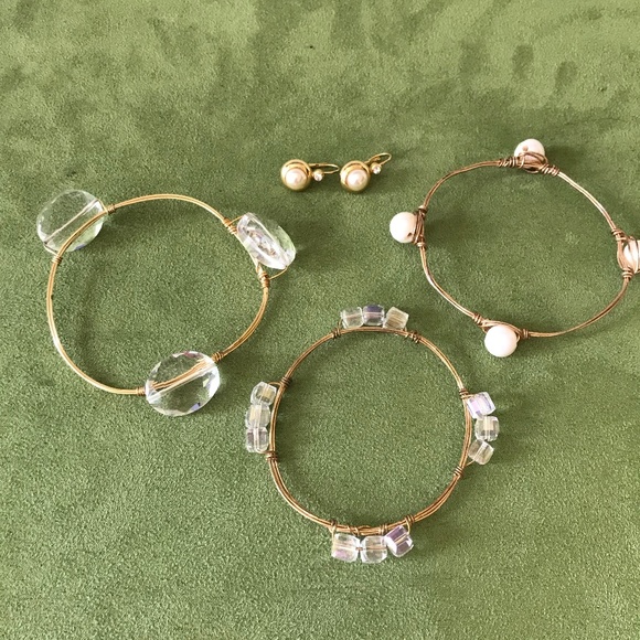 Crystal Wire Wrap Bangle/Pearl Earrings