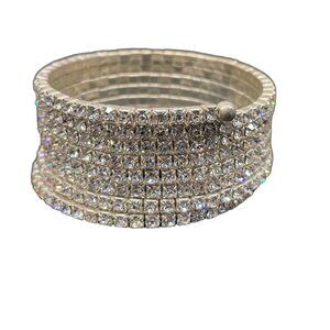 Crystal Wrap Bangle Bracelet Silver Tone Wedding Party/cocktail Date Night