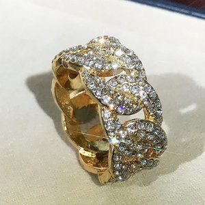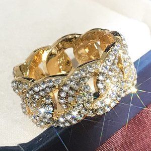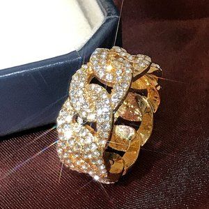 🌸Crystal Zircon Hip Hop Iced Out 18K Gold Plated Mens Diamond Ring, UNVN12381