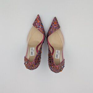 Multicolor crystal shoes.