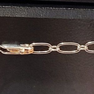 The clasp is a lobster claw. A 2 inch length of chain has been added to make the necklace adjustable. It measures 19.5 inches long - with the 2 inch chain it can go up to 21 1/2 inches.
