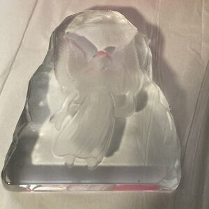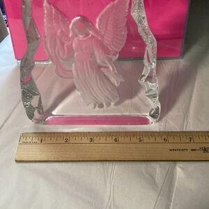 Heavy 2lbs glass with embossed angel very pretty piece especially when the light come through it no flaws excellent condition