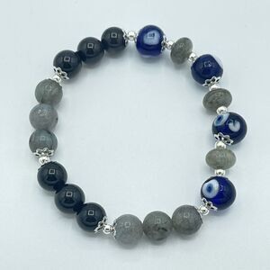 Crystal beaded stretch bracelet ONE NEW evil eye silver obsidian labradorite rei