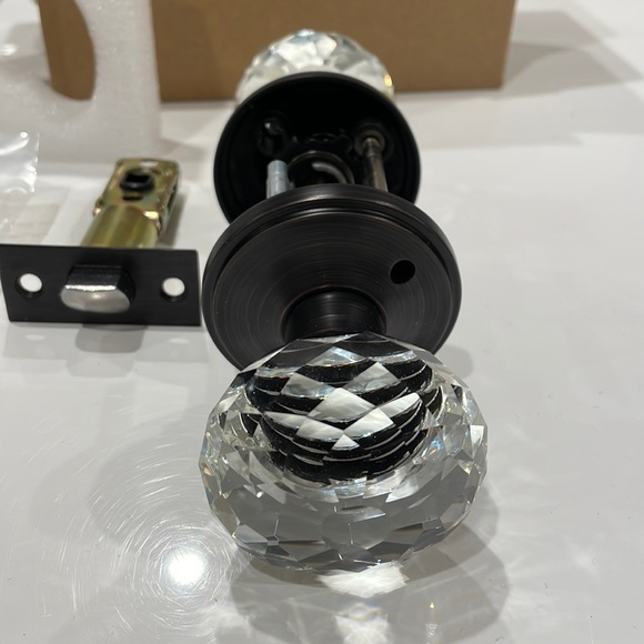 Brand new beautiful antique matte bronze finish crystal doorknob with both sides being the same. Bring elegance in any room. Push button lock from the inside