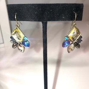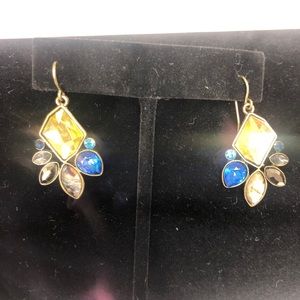 Largest stone is yellow gold. Others are turquoise, cobalt blue, mother of pearl-type, hematite-type, charcoal, navy.