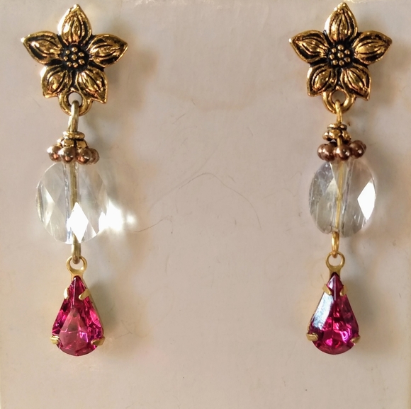 discontinued Swarovski beaded crystal earrings with gold plated components 1 1/2 inches