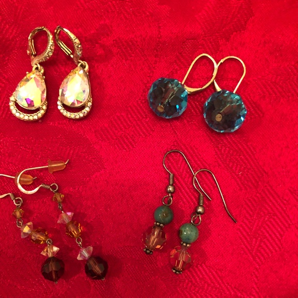 4 pairs of crystal earrings: Clear crystal stones Turquoise crystal stones Turquoise beads and smoky crystals Gold, clear and plum crystals