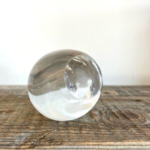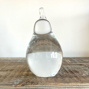 Beautiful crystal clear glass orb pear, paper weight. There are no markings or stickers.