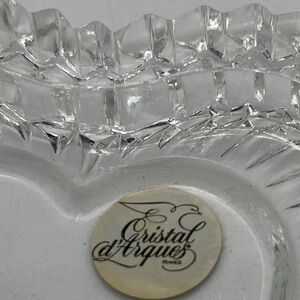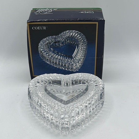 Two-piece heart box that is genuine lead crystal from France. Cristal d’Arques. Coeur. Vintage “new in box.” 4” wide. Great for holding jewelry, trinkets, etc. Discard the box and it could be a beautiful way to present an engagement ring!