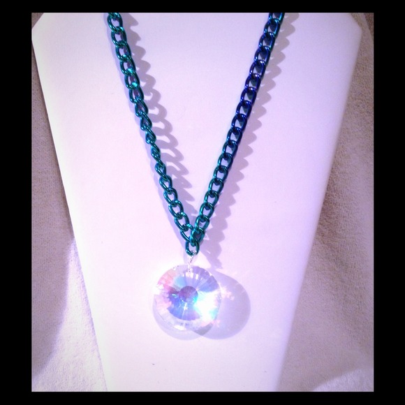 This is a singular iridescent crystal handmade with a turquoise and blue link. Get better deals at www.thebeautyboxboutique.com