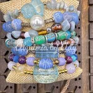 Crystal pearl and aquamarine handmade chunky beaded bracelet