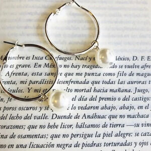 Crystal pearl medium hoops dangle charm long earrings/Lolita