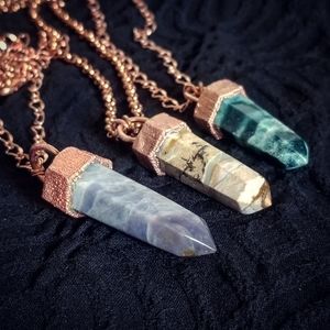 Assorted crystal point pendants.