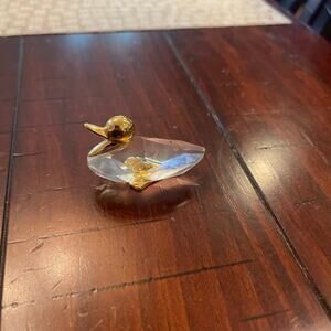 Crystal swan Swarovski ? not signed Gold plated head and feet 3"