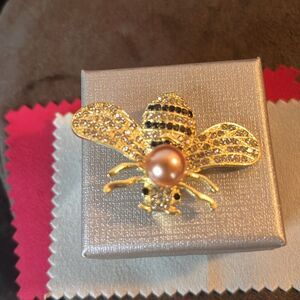 Crystal Bee with Pearl Goldtone Brooch. New. W 2” x L 1.5”. Comes in a gift Box.