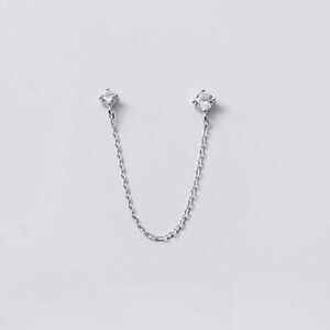 Crystal Chain Stud Sterling Silver Cartilage Double Piercing Climber Earring NEW