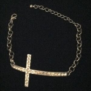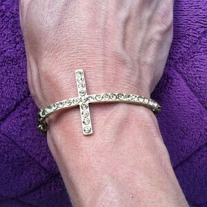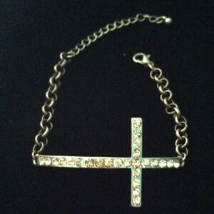 Beautiful matte gold side cross bracelet with golden yellow crystals. Adjustable.