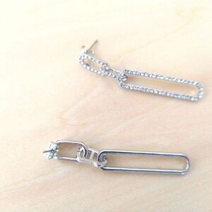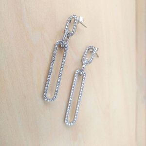 Austrian Crystal Paper Clip Dangle Earrings. Silvertone. Modern, contemporary, minimalist design.